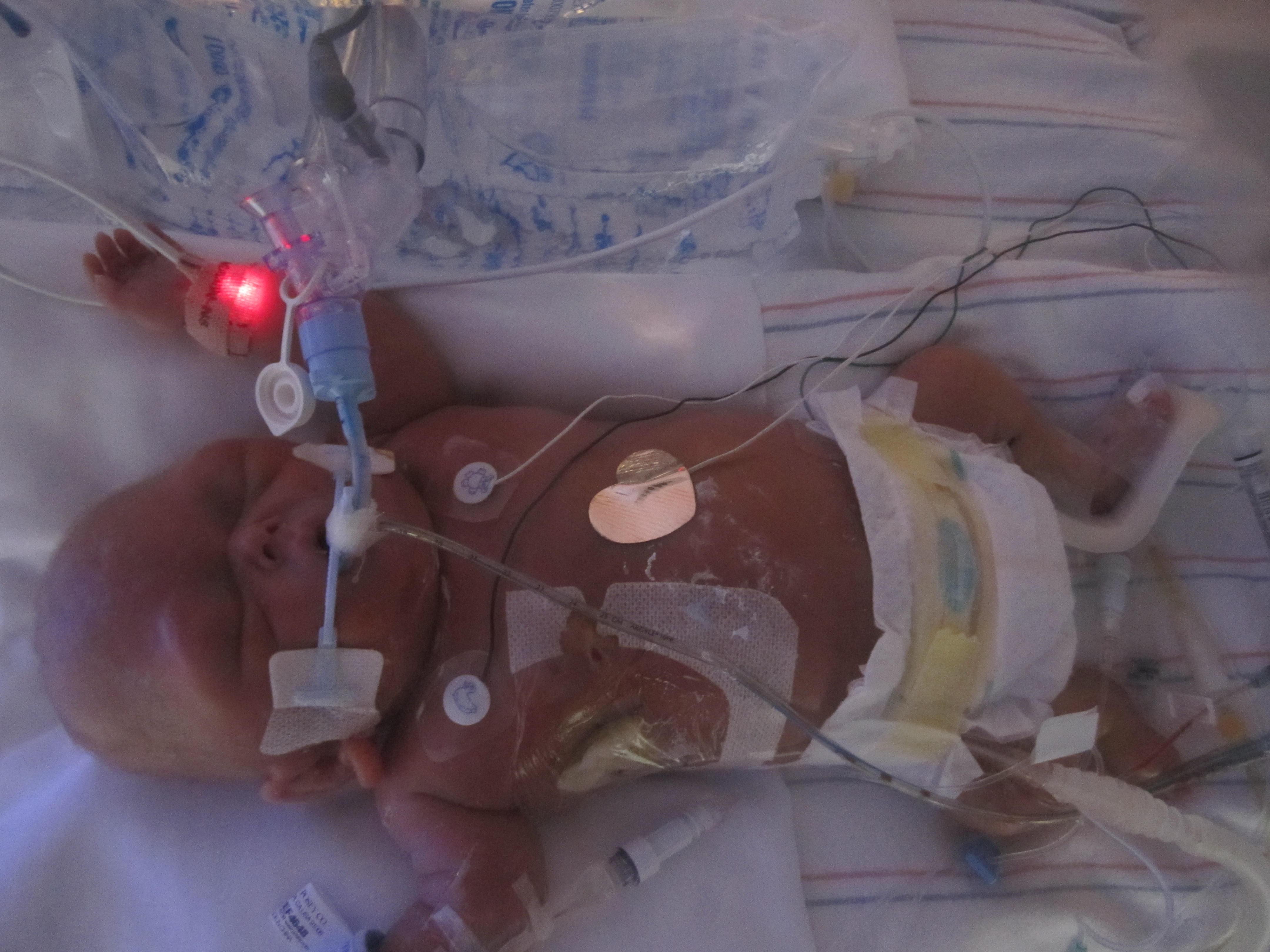 Remy has had her ups and downs since my last post.   Her blood gases have been very good.  Her SAT’s (oxygen levels) were high, which is positive.  Her MAP’s (blood pressure) have been up, another positive. Her heart rate has been normal for a preemie, in the 160’s.  Additionally, she has been peeing like crazy!  Because of her good vitals, the doctors have been weaning Remy off of her meds.  Because of this, and the peeing, her swelling went down a little bit.  Lastly, her oscillator today was down to 45% down from 100%.  A giant sigh of relief. She was still in very critical condition, but progress is what we want each day and Remy we were getting it!