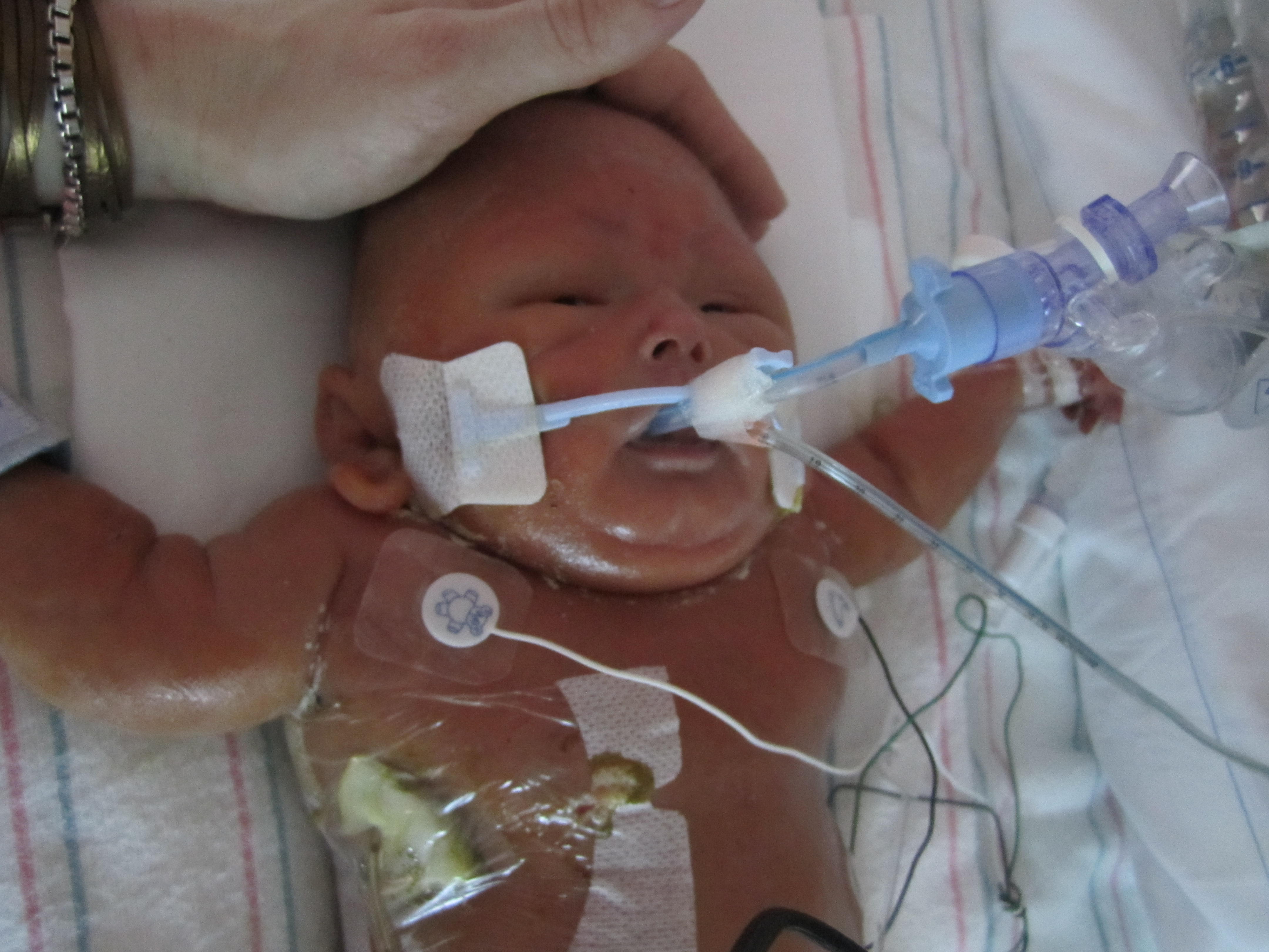 Remy has been on breathing assistance for quite some time now, and being on high frequency machines is not good for her long-term health.  Since she has one damaged lung and one hyper-inflated lung, the more time she spends on the oscillator, the more likely the good lung is to collapse.  In a perfect world, Remy will gradually step down from one machine to the next, each time on lower settings, until she is breathing on her own (which will take a lot of time.)  Shortly after the fourth surgery of the day they attempted to wean her from the oscillator to the jet (another high frequency machine.)  It did not work out as the doctors anticipated.  She kept trying to breathe over the machine, which in some instances is promising, but this was a bad sign.  She did not tolerate it.  She experienced something called respiratory acidosis.  At this point all her vitals went in the wrong direction.  Everything Remy had done to get to this transition point went downhill.  She was put back on the oscillator, but on higher settings this time and had to work all night and into the morning to get back to where she was before the transition.  Our girl just went through in a day what so many don’t even experience in a lifetime.  This was so tough for Mary to see, and so difficult for me to be away from.